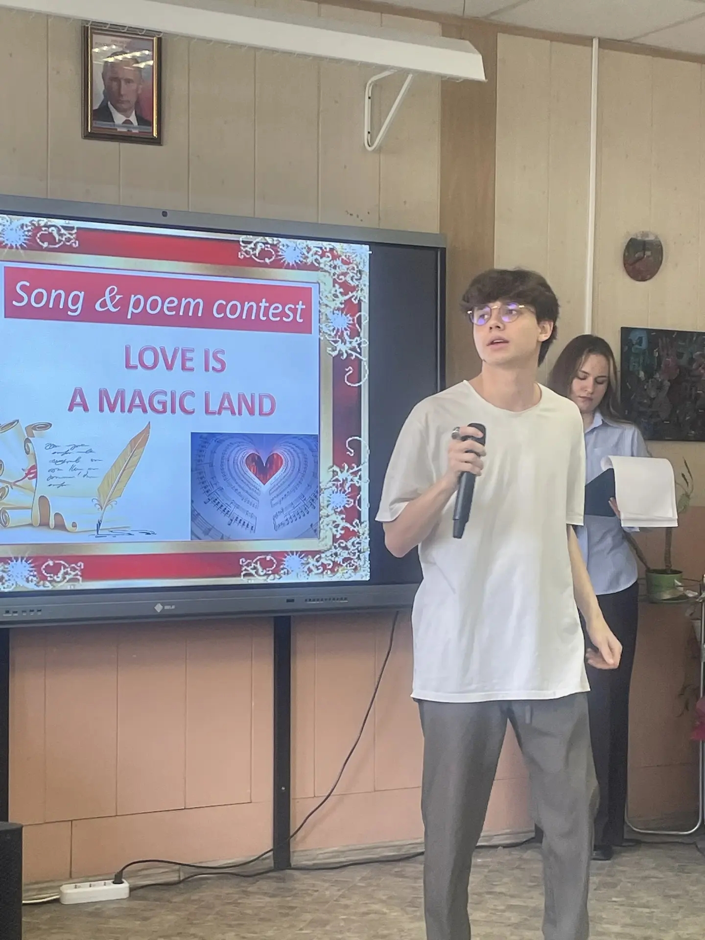 В литературно-музыкальном конкурсе на английском языке «Любовь — волшебная страна» Алексей Киселевский выступил с песней, а выразительное чтение стихотворения принесло Амин Ким заслуженное 2 место в данной номинации.
